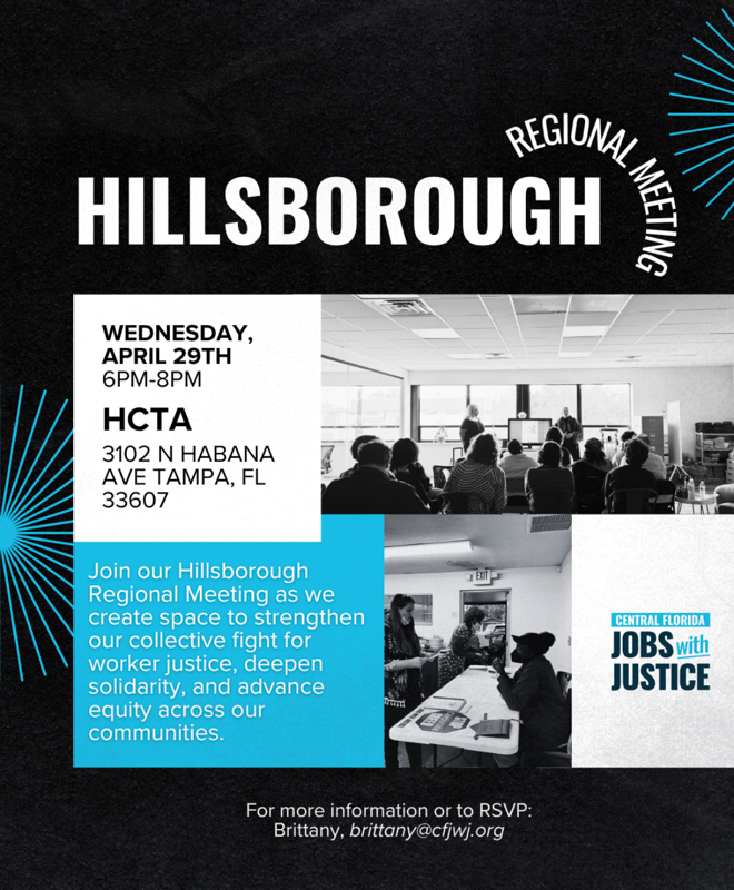 4/29: Central Florida Jobs with Justice Hillsborough Regional Meeting